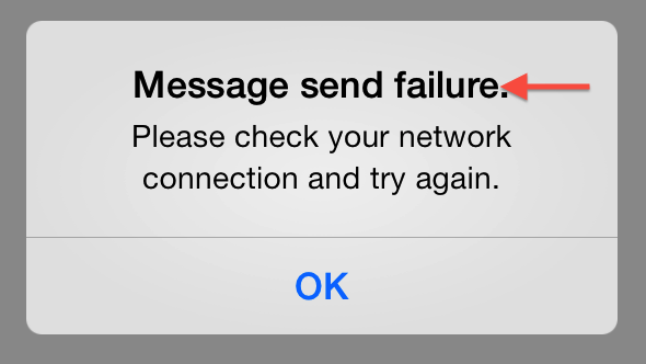 Message send failure.Title for alertview that shows when starting new conversation was not successful