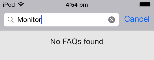 No FAQs foundText that shows below search when no FAQs are found for showFAQs: